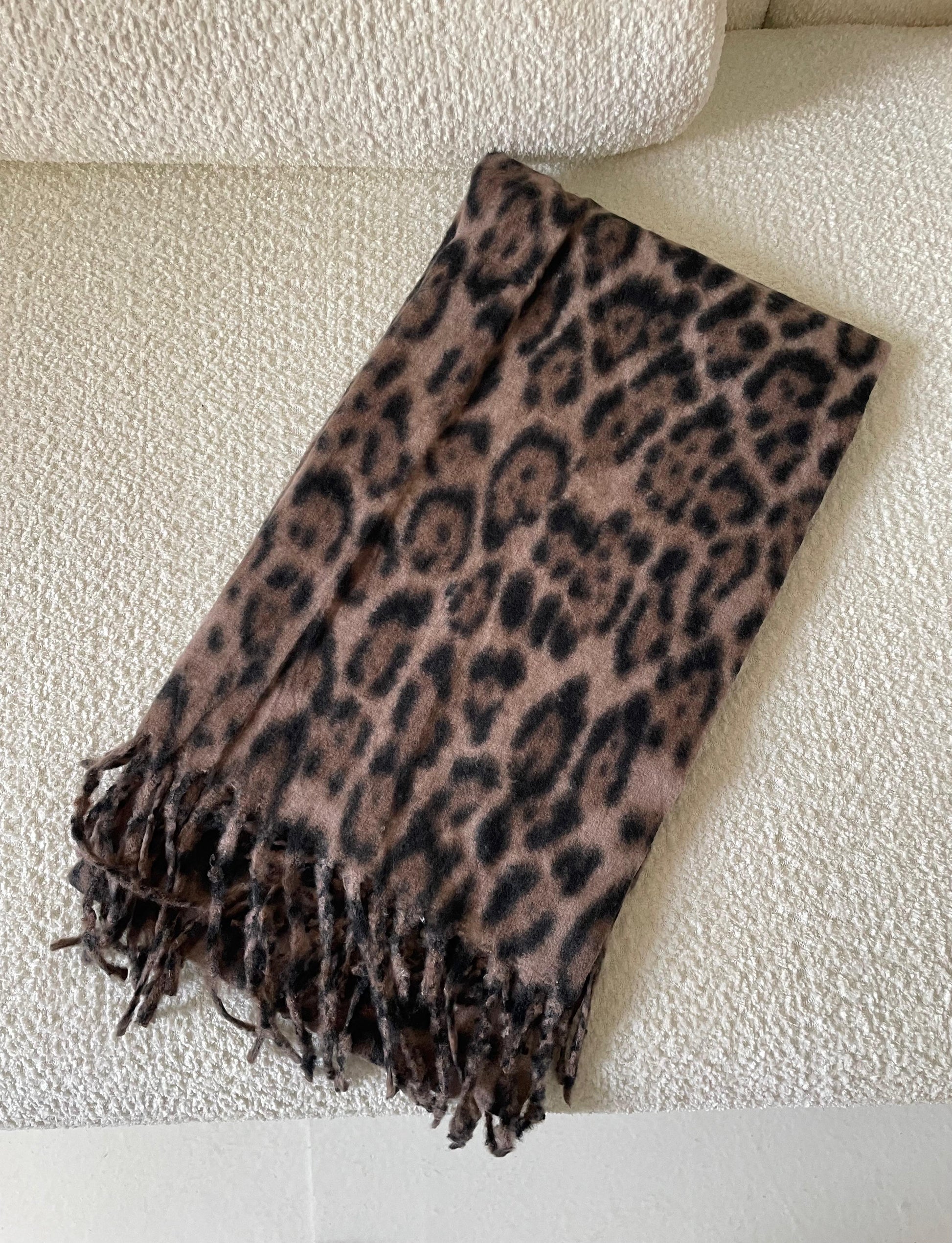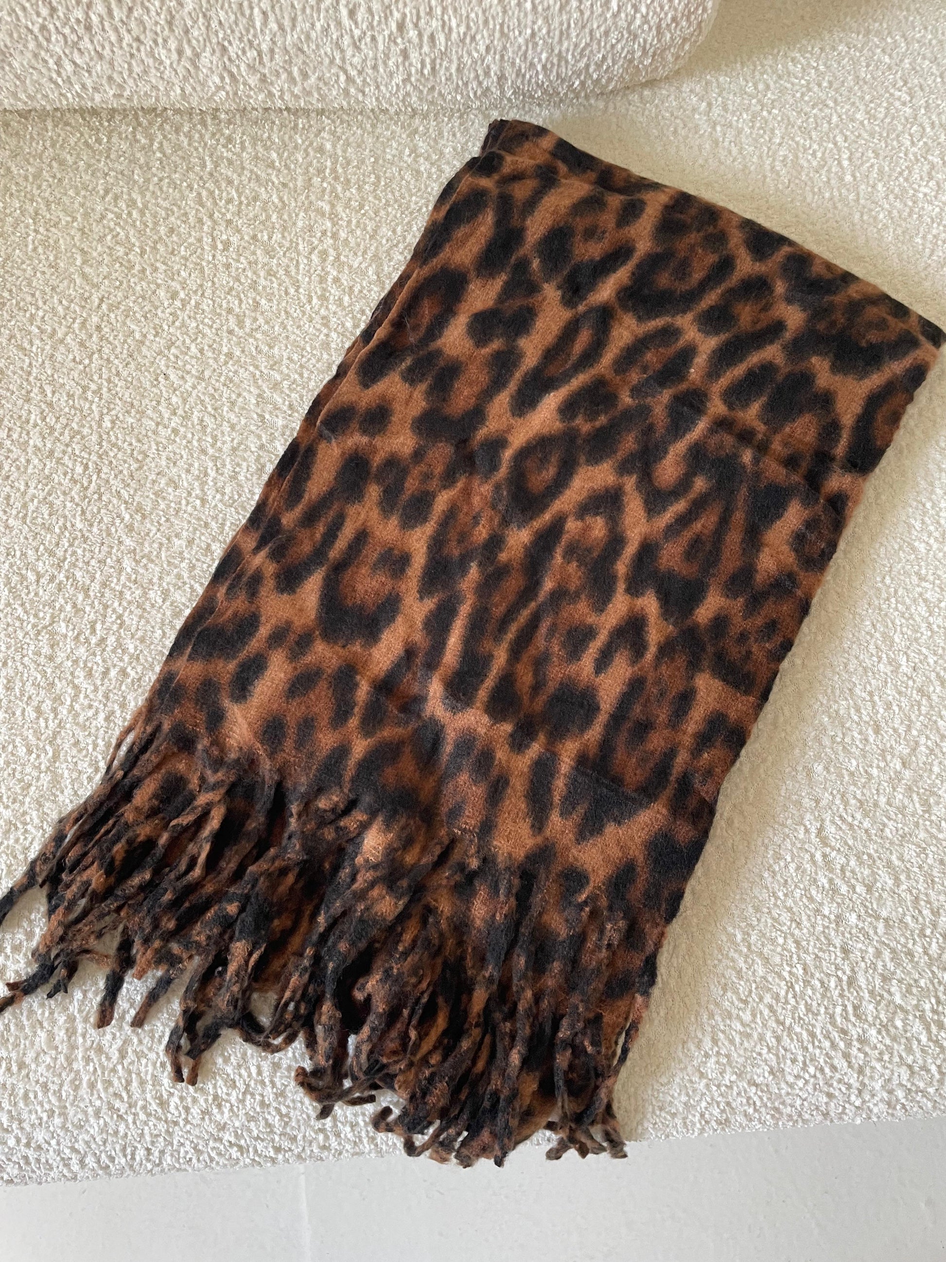 Soft and warm mohair tiger scarf — the perfect touch for your winter looks.